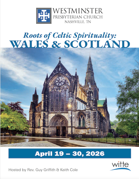 Guy Griffith is in the final stages of planning a study trip Celtic Spirituality: Wales and Scotland for April 19-30. If you have questions, please reach out to Guy (ggriffith@nashvillewpc.org) or Keith Cole (keithc@wittetravel.com).