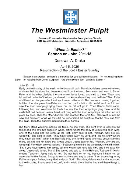 Westminster Talking the Text Podcast for Sunday, April 5, 2026 | Easter Sunday | John 20:1-18 | with Donovan Drake, Guy D. Griffith, Stephanie Boaz, Ashley Higgins, & Will Wellman
